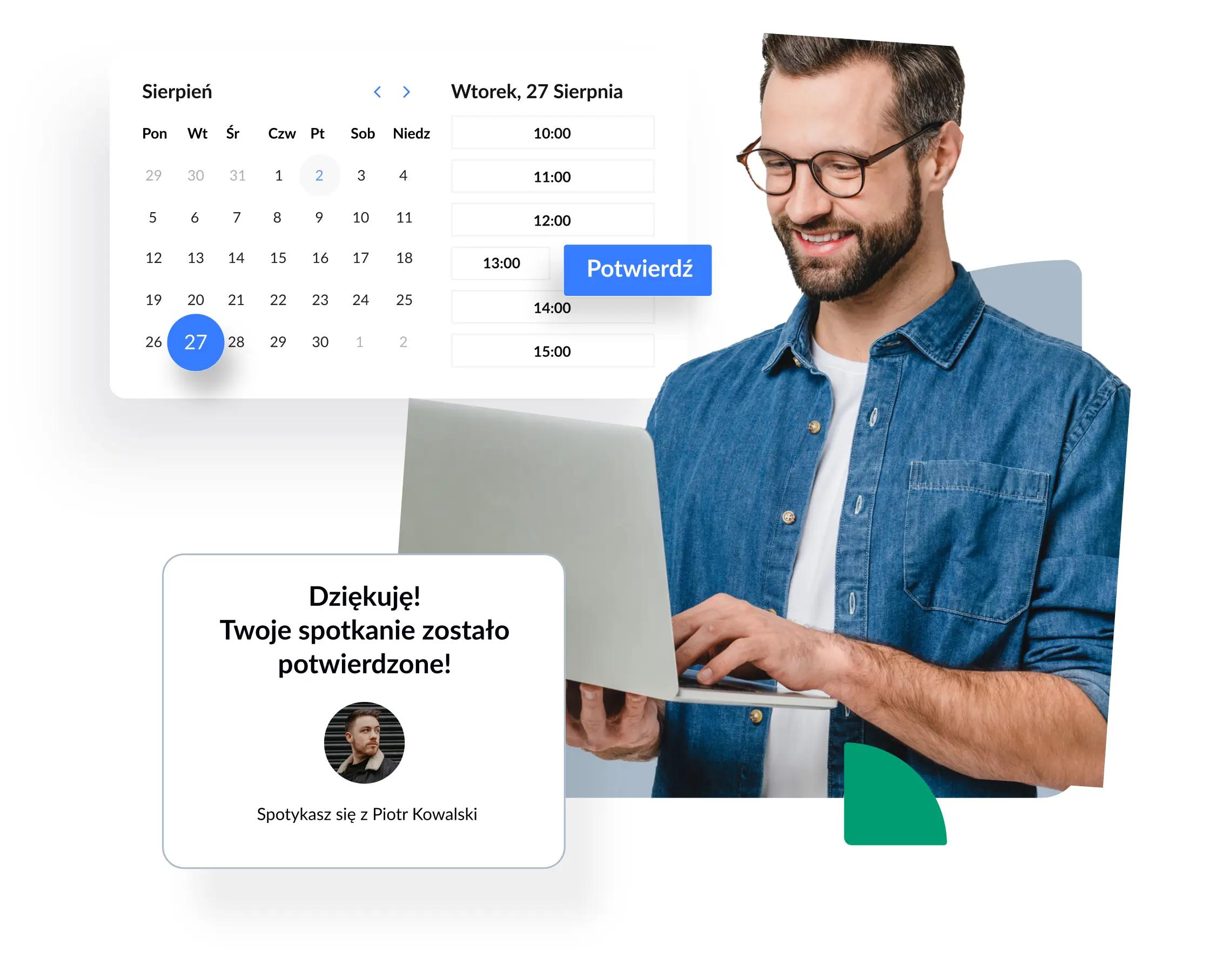 Dzięki CallPage Meetings automatycznie planujesz i rozdzielasz spotkania w zespole. Przypisuj osoby do odpowiedzi w formularzu i pokazuj klientom dostępne kalendarze najbardziej odpowiedniej osoby.
