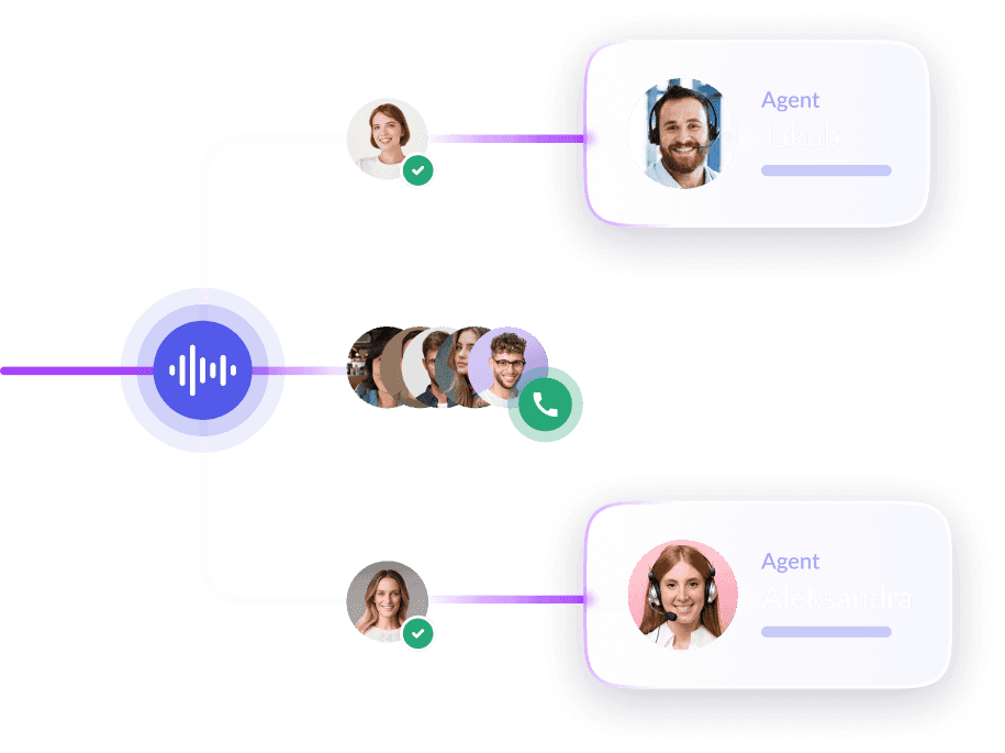 Dodaj do widżetu agenta głosowego, który odbierze każde połączenie gdy Twój zespół nie będzie dostępny. Odpowiada na pytania, kwalifikuje rozmowy, zapisuje dane i przekazuje ważne zapytania do Twojego zespołu. Dzięki temu nie tracisz klientów i obniżasz koszty obsługi połączeń.