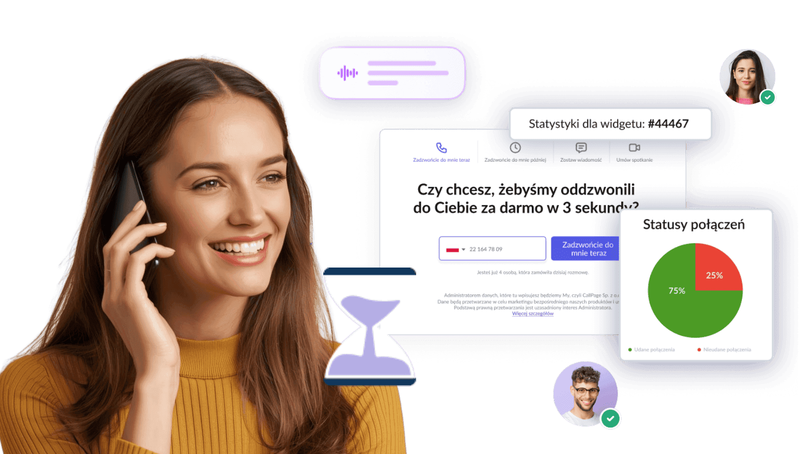 Połącz się z odwiedzającym w 28 sekund i zamień go w rozmowę sprzedażową. Firmy korzystające z CallPage notują nawet +75% więcej rozmów z potencjalnymi klientami.
